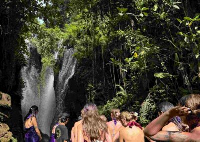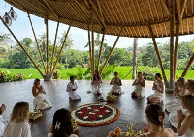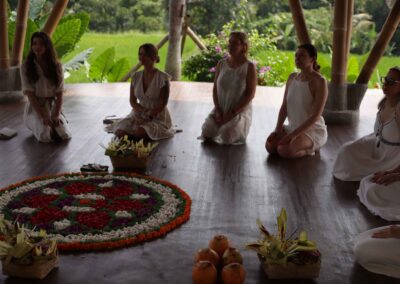 - Ceremonie: powitalna z kwiatami i kakao, ceremonia oczyszczenia Melukat