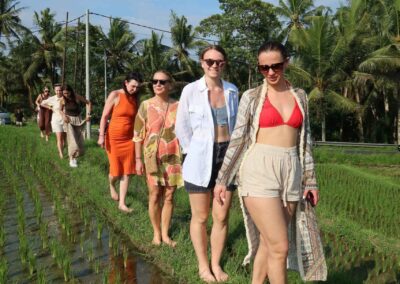 Dzień rozpoczniemy od porannej medytacji z afirmacjami oraz dynamicznej vinyasy jogi, która dostarczy energii na nadchodzący dzień. Następnie zjemy wspólne śniadanie, delektując się lokalnymi przysmakami. Tego dnia wybierzemy się na balijską ceremonię Melukat w świątyni Taman Beji – jest to w dalszym ciągu nieturystyczne miejsce, które jest prawdziwą perłą Bali. Taman Beji to kompleks świątynny położony w bujnej dolinie, otoczony gęstą tropikalną roślinnością. Znany jest z malowniczych, naturalnych basenów wodnych oraz wodospadów, które tworzą niezwykłą, spokojną atmosferę. Miejsce to jest często odwiedzane przez lokalnych mieszkańców w celu przeprowadzenia rytualnych kąpieli oczyszczających. Ceremonia Melukat w tym miejscu jest prawdziwym doświadczeniem i obejmuje kilka etapów, które mają na celu zmyć karmę pokoleniową oraz pobłogosławić pomyślnością. Po tym inspirującym doświadczeniu udamy się na spacer z widokiem na tarasy ryżowe. Spacerując wśród zielonych tarasów będziemy praktykować mindfulnes – poczujemy spokój i harmonię tego niezwykłego miejsca, mając możliwość uchwycenia wyjątkowych chwil i widoków. Powrót do hotelu i wspólna kolacja